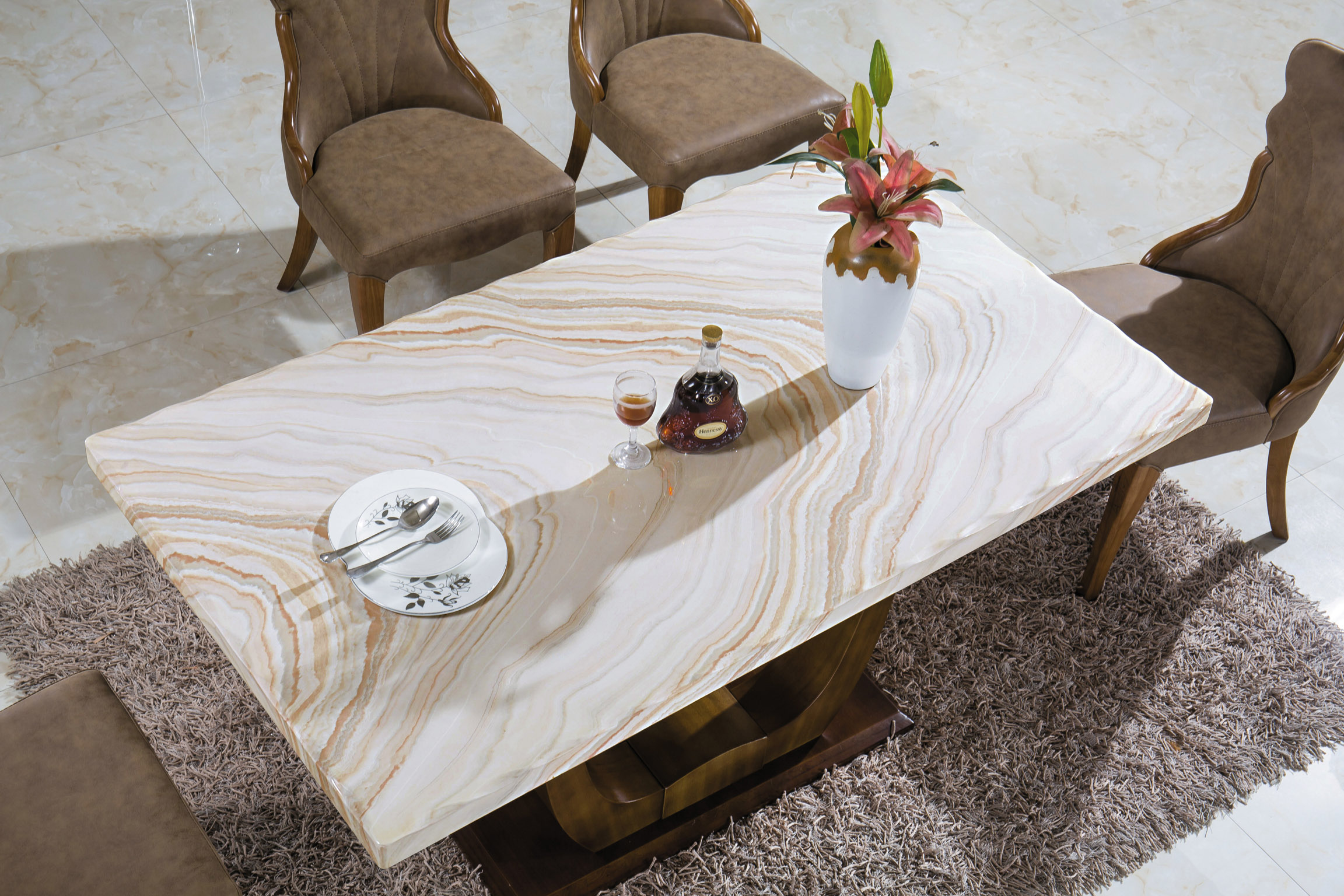 - Mẫu bàn ăn mặt đá Hàn Quốc BG-621 chân bàn được tạo dáng hình chữ U cách điệu, khung bằng gỗ chắc chắn, bền đẹp.