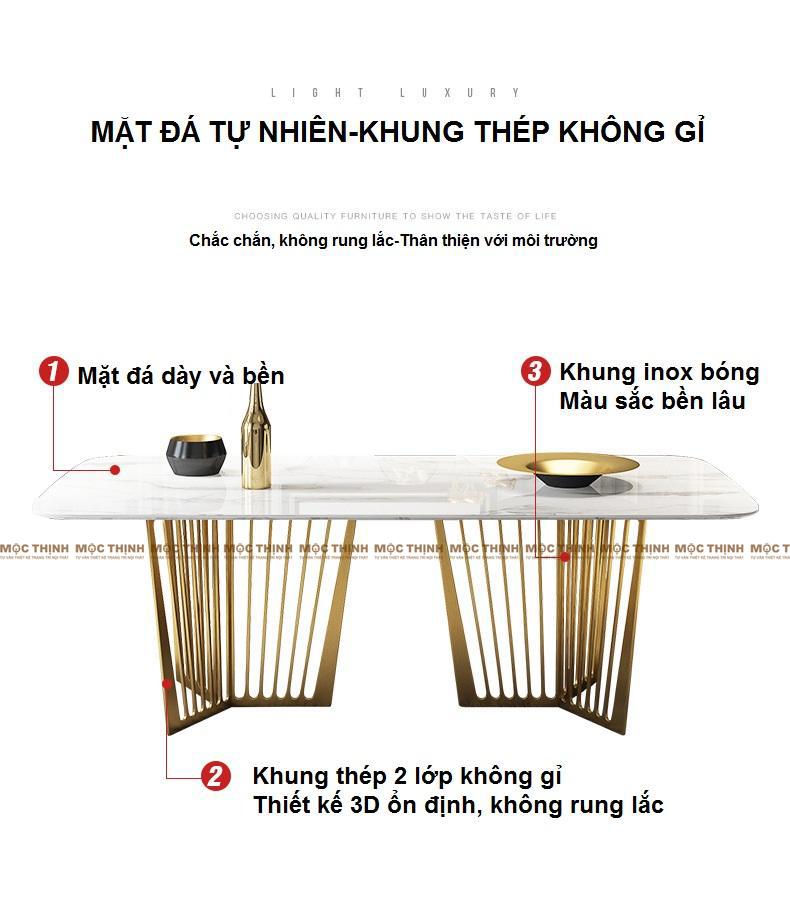 BÀN ĂN MẶT ĐÁ KHUNG CHÂN INOX MẠ VÀNG NHẬP KHẨU PS703