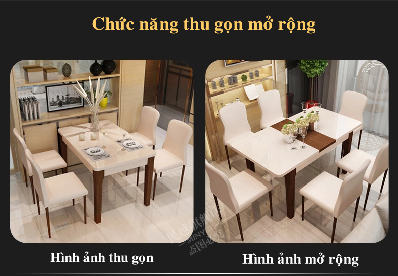 - Bàn ăn thông minh, bàn ăn rút gọn, bàn ăn mở rộng, bàn ăn tuỳ chỉnh kích thước đều cùng một tên gọi cho loại bàn ăn này. Bàn ăn thông minh mang đến sự linh hoạt và tiết kiệm diện tích cho phòng ăn hiện đại.