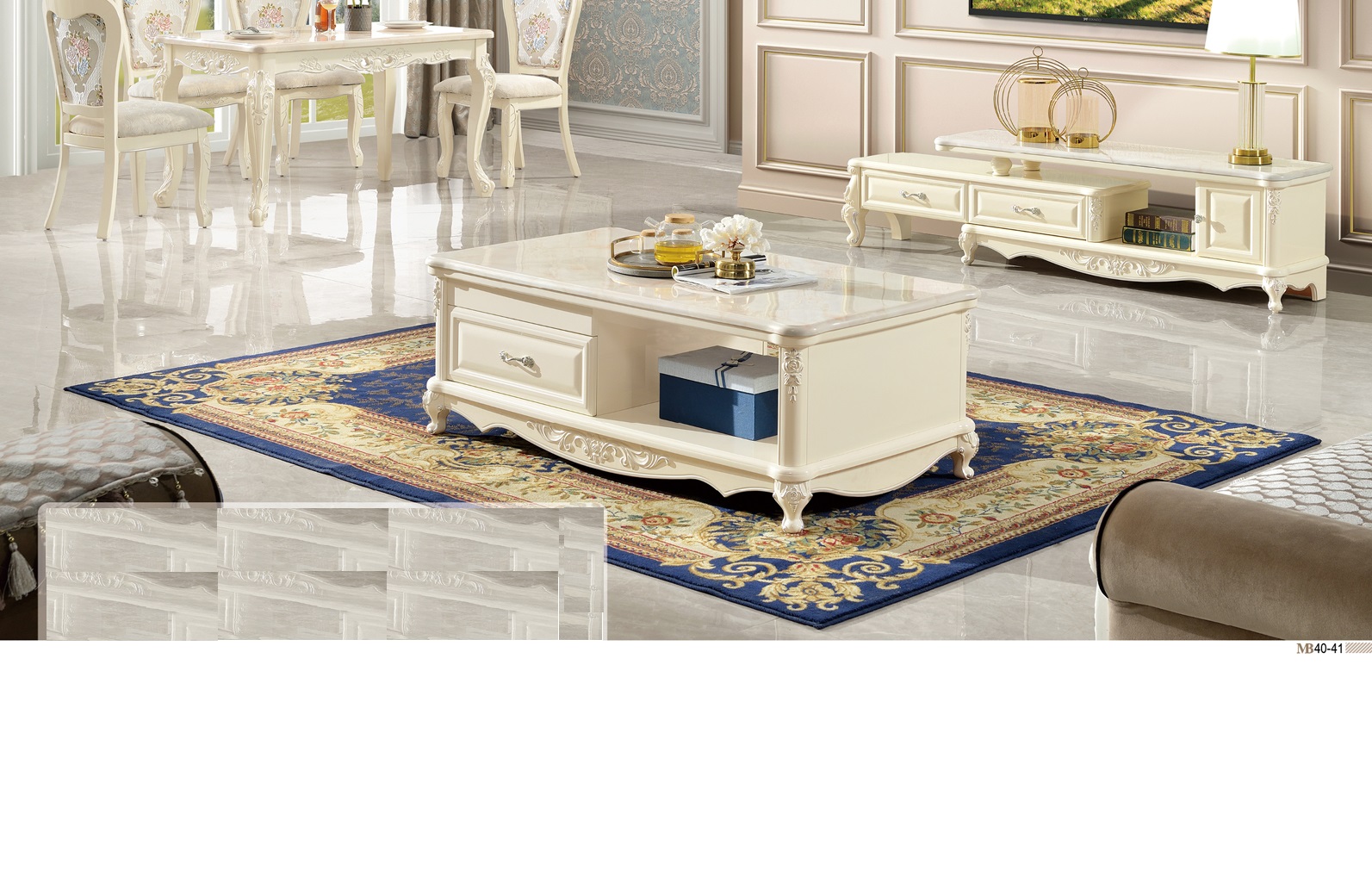 1.Bàn trà màu trắng sang trọng nhìn vô cùng đẳng cấp