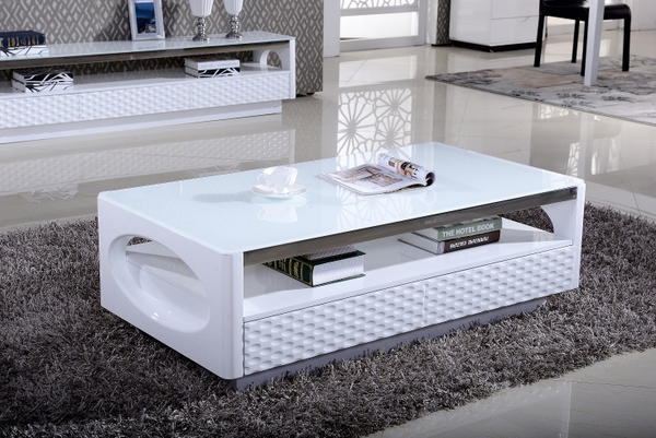 - Nếu bạn đang tìm một chiếc bàn trà sang trọng, hiện đại thì đây đúng là sản phẩm bạn cần tìm, sản Phẩm được nhập khẩu 100% từ nươc ngoài, chất liệu gỗ tự nhiên, kính cường lực mài cạnh,gồm 4 hộc kéo, mỗi bên 2 hộc rất là tiện dùng, màu sắc nhã nhặn, thích hợp để cạnh những bộ sofa hình L, Công nghệ sơn tĩnh điện Lacquer khó phai màu với thời gian. Những đường vân trắng đen tạo cảm giác hiện đại cho sản phẩm.