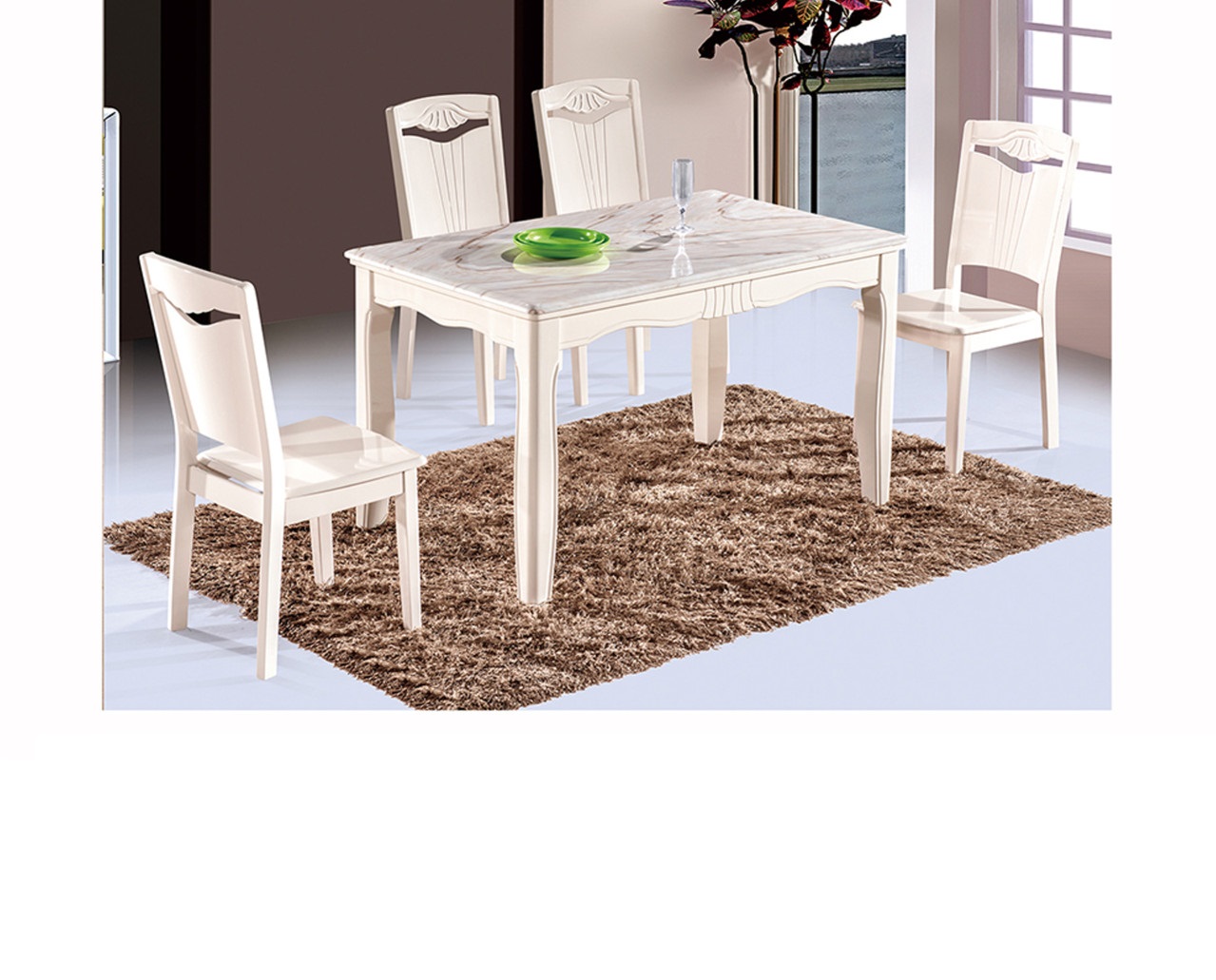 Nội Thất Mộc Thịnh xin giới thiệu đến các bạn Bộ Bàn Ăn Mặt Đá cao cấp nhập khẩu Mã số 37-1 nhập khẩu 100% từ nước ngoài với kiểu dáng sang trọng với chất liệu gỗ cao su tự nhiên, chân và khung bàn sơn màu trắng. Bộ Bàn Ăn Mặt Đá cao cấp nhập khẩu Mặt đá sang trọng với hoa văn là những đường nét gợn sóng tạo điểm nhấn cho chiếc bàn ăn phong cách hiện đại và phá cách. Những chiếc ghế cũng được làm bằng gỗ cao su cứng cáp, mặt tựa lưng ghế uốn theo chiều lưng của người ngồi, nên khi ngồi tạo cho người ngồi cảm giác thoải mái và dễ chịu.