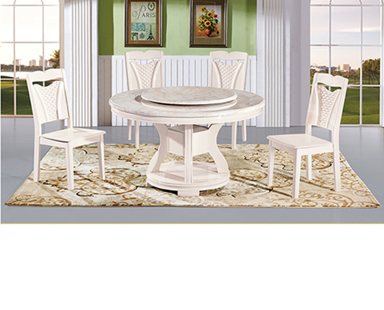 Nội Thất Mộc Thịnh xin giới thiệu đến các bạn Bộ Bàn Ăn Mặt Đá tròn cao cấp nhập khẩu Mã số C-41 nhập khẩu 100% từ nước ngoài với kiểu dáng sang trọng với chất liệu gỗ cao su tự nhiên, chân và khung bàn sơn màu trắng kem. Bộ Bàn Ăn Mặt Đá cao cấp nhập khẩu Mặt đá tròn sang trọng với hoa văn sinh động tạo điểm nhấn cho chiếc bàn ăn phong cách hiện đại và phá cách. Những chiếc ghế cũng được làm bằng gỗ cao su cứng cáp, mặt tựa lưng ghế uốn theo chiều lưng của người ngồi, nên khi ngồi tạo cho người ngồi cảm giác thoải mái và dễ chịu.