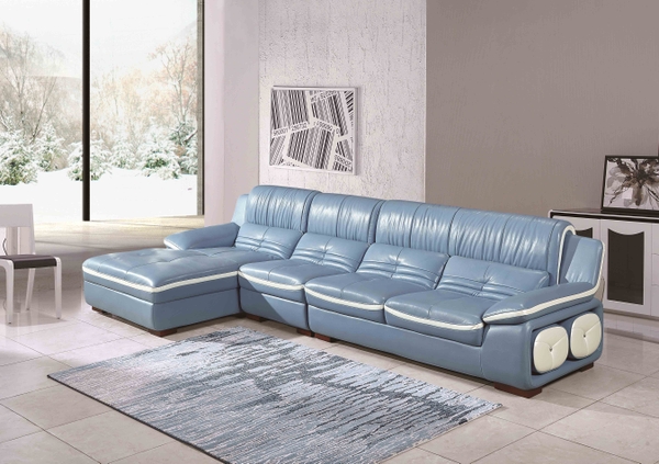 - Màu sắc của bộ sofa da 528 màu xanh nhạt , với điểm nhấn là phần tựa lưng phía sau được may chỉ nhún nhẹ có khoảng cách rất đẹp mắt và tinh tế, phải với những thợ lành nghề và nhiều năm kinh nghiệm mới có thể may được tạo dáng này, phần tay sofa may uốn tạo cảm giác sang trọng và quí phái cho sản phẩm.
