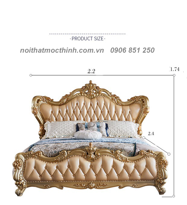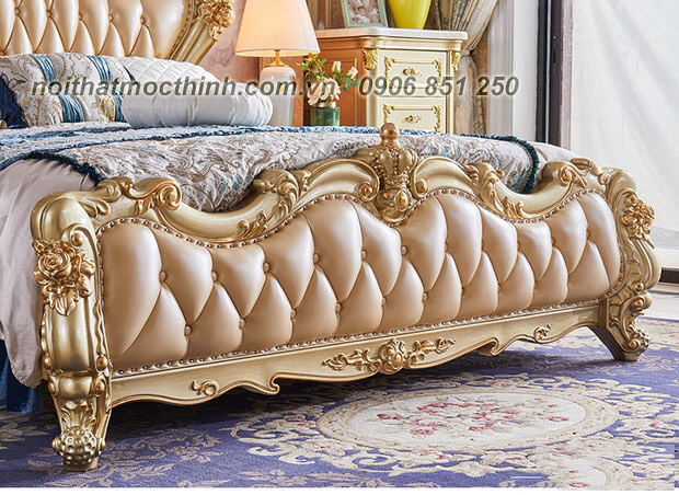 Thiết kế theo phong cách cổ điển đậm chất hoàng gia, điểm nhấn của các họa tiết trang trí nằm ở phần đầu và đuôi giường.