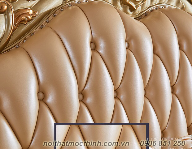 Đầu giường và đuôi giường bọc da, kỹ thuật căng da tiên tiến, bọc đều và khít, đầy đặn, bóng bẩy, độ thẩm mỹ cao.