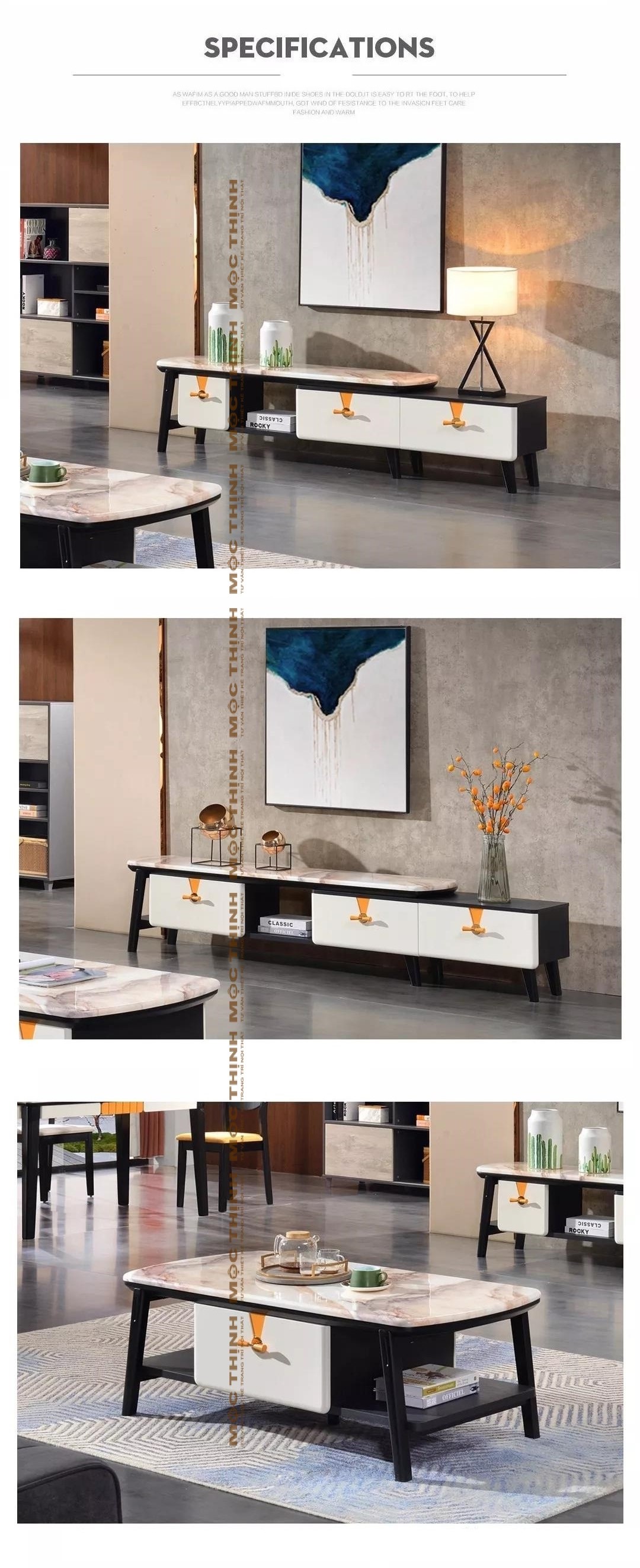 - Mẫu 9198 gây ấn tượng với mặt kệ tivi được làm bằng đá Marble cao cấp, dày đẹp, bo cạnh ở các góc, màu trắng với các đường vân đá tự nhiên rất sang trọng, được thiết kế thông minh với phần ngăn tủ có thể trượt kéo về 2 bên. Vì thế bạn có thể thu nhỏ hoặc tăng kích thước chiều dài của kệ tùy ý thích, thật tiện dụng đúng không nào.