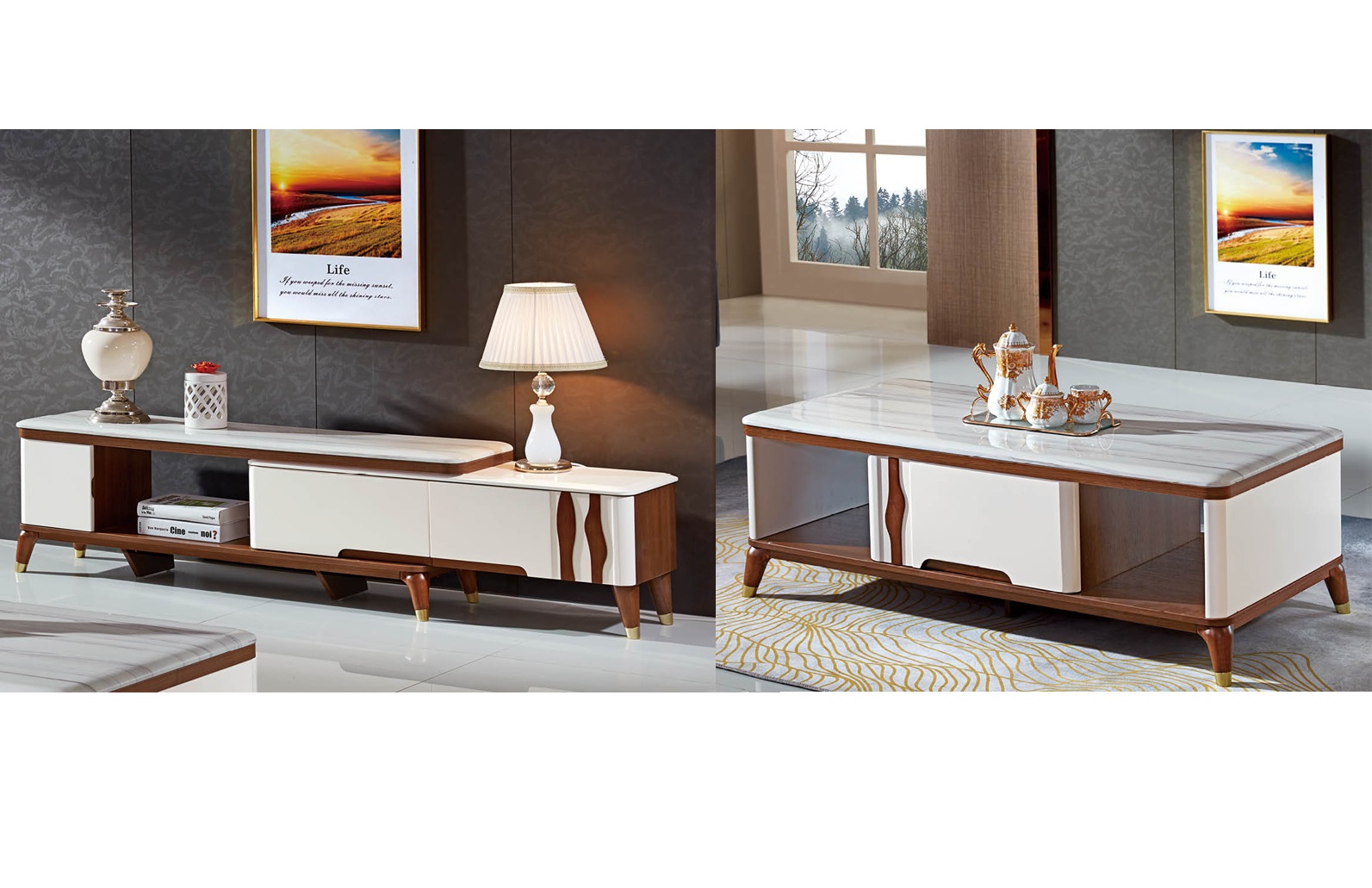 - Mẫu D115-20 gây ấn tượng với mặt kệ tivi được làm bằng đá Mable cao cấp, dày đẹp, bo cạnh ở các góc, màu trắng với các đường vân đá tự nhiên rất sang trọng, được thiết kế thông minh với phần ngăn tủ có thể trượt kéo về 2 bên. Vì thế bạn có thể thu nhỏ hoặc tăng kích thước chiều dài của kệ tùy ý thích, thật tiện dụng đúng không nào.