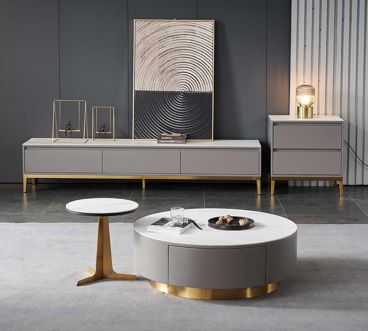 Set bàn trà A10-C được làm từ 𝐠𝐨̂̃ cao cấp 𝐬𝐨̛𝐧 𝐏𝐔 kết hợp Chân inox mạ vàng vô cùng chắc chắn và sang trọng. 𝐊𝐡𝐮𝐧𝐠 𝐛𝐚̀𝐧 được thiết kế thành hình tròn tinh tế, đảm bảo độ bền và an toàn khi sử dụng.Ngăn lưu trữ của bàn trà được thiết kế ẩn, giúp tôn thêm độ tinh tế, sang trọng của không gian phòng khách.