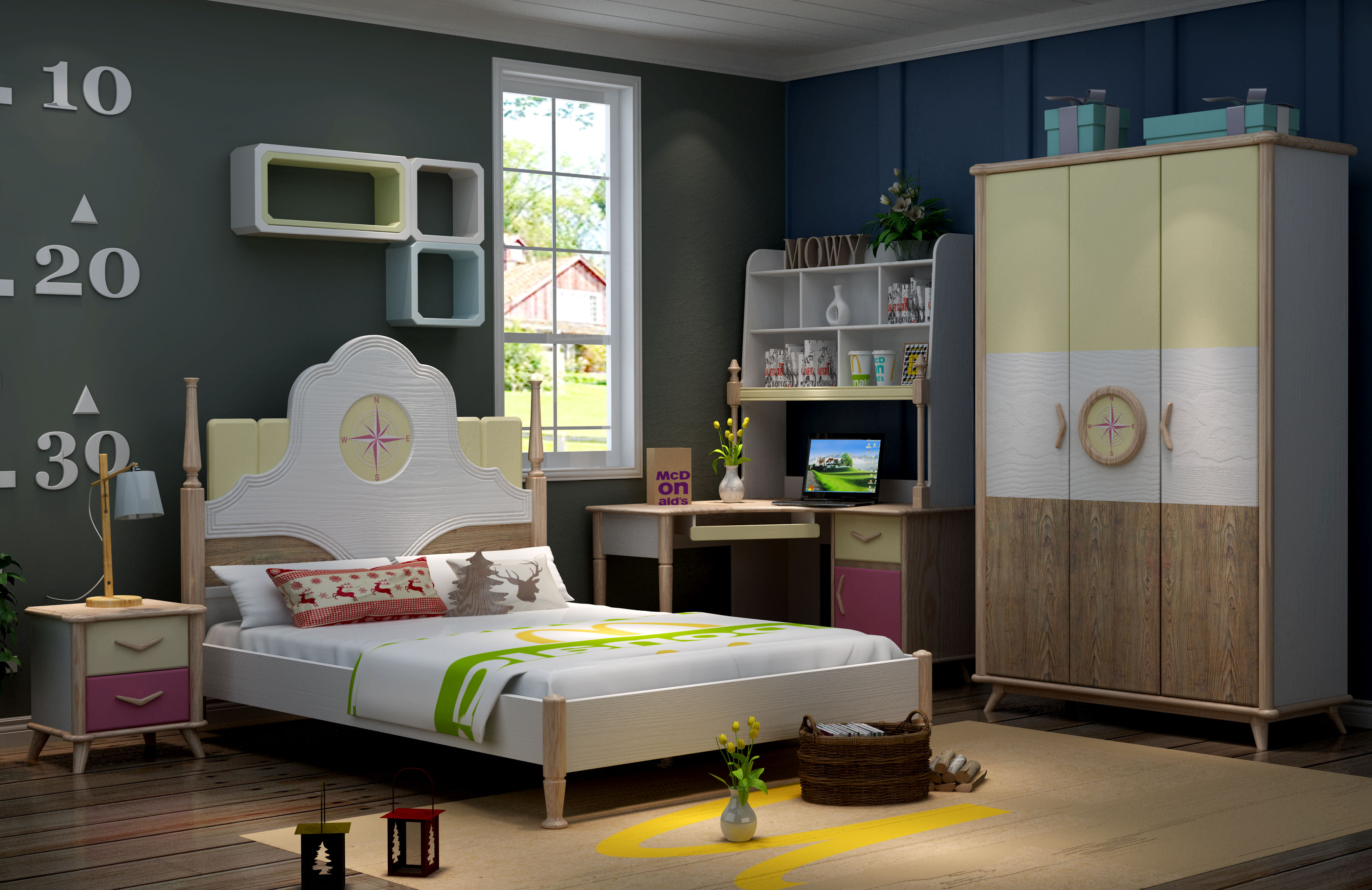 BỘ 3 SẢN PHẨM GIƯỜNG, TỦ, VÀ BÀN LÀM VIỆC B266