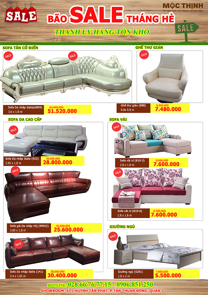 giảm giá các mặt hàng nội thất đang có tại showroom