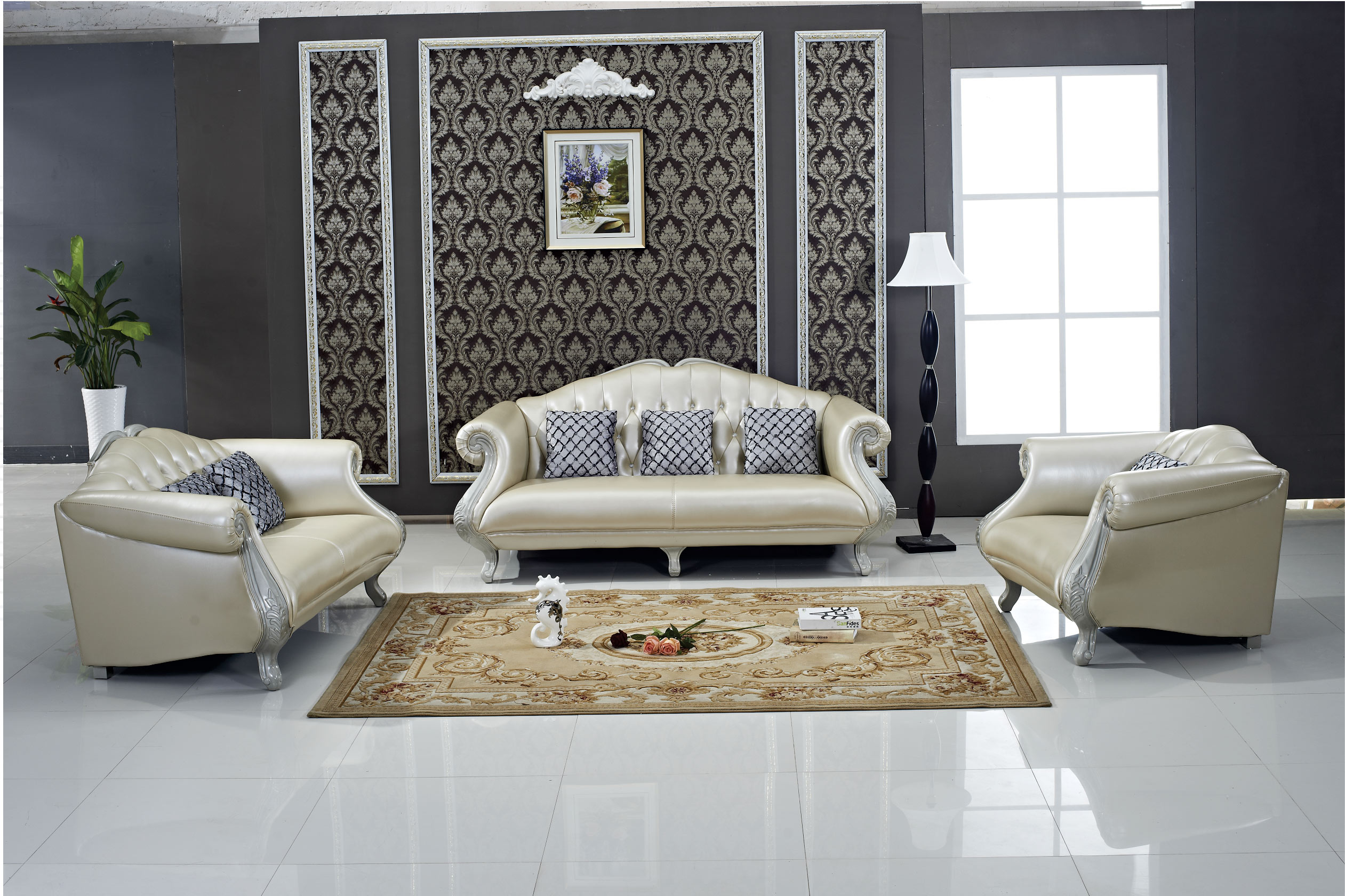 - Sofa Tân cổ điển 2016 sang trọng với tông màu kem, nổi bật trên nền trắng bạc sơn bóng của khung gỗ sofa, đường nét giật khuy đính đá tinh tế. Các chi tiết thành ghế được cách điệu mềm mại mà vẫn tạo sự vững chắc, bền bỉ nhờ được chế tác từ gỗ đỏ tự nhiên. Đây chắc chắn là sản phẩm nội thất phù hợp với Qúy khách hàng yêu thích sự đơn giản mà vẫn đẹp sang trọng, tinh tế.