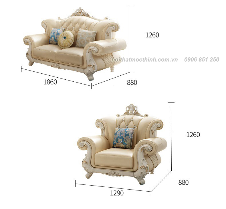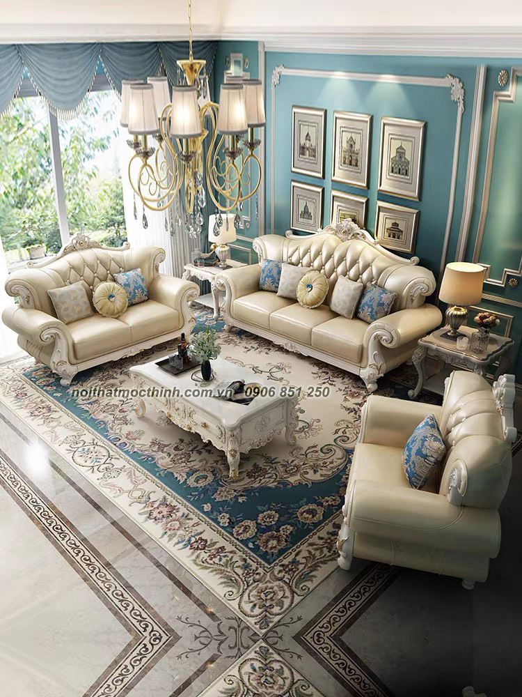 - Tên sản phẩm: Bộ Sofa tân cổ điển da bò 8693