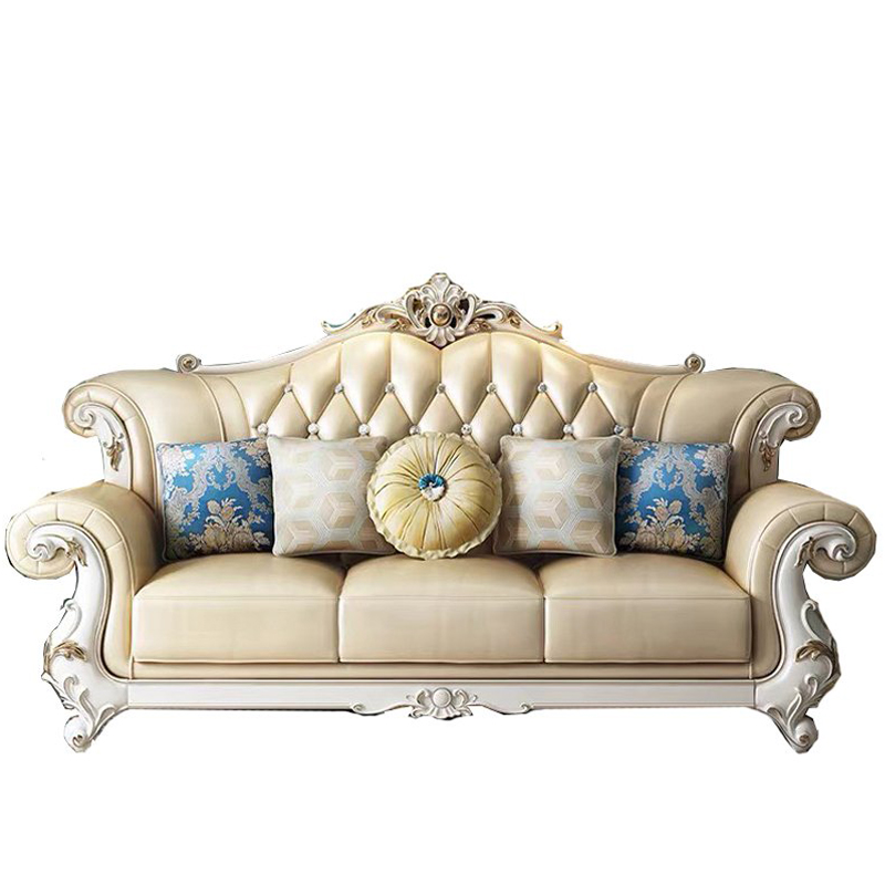 Sofa tân cổ điển bọc da bò 8693 nhập khẩu nguyên kiện trực tiếp từ xưởng sản xuất.