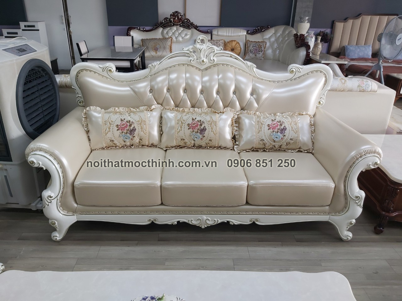 Sofa tân cổ điển bọc da bò 8928 nhập khẩu nguyên kiện