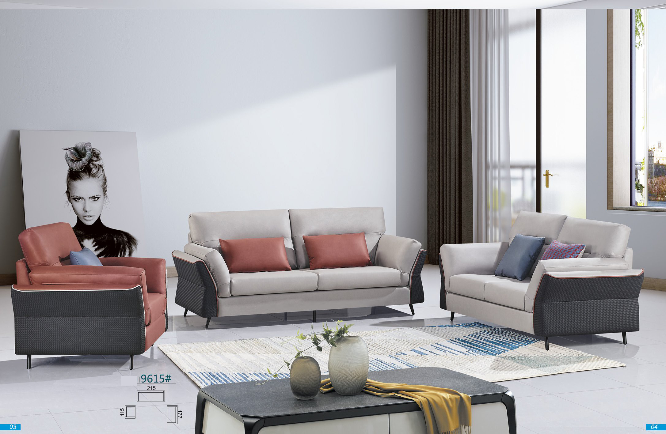 - Bộ Sofa Vải Công Ngiệp 9615 nhập khẩu trực tiếp từ nhà máy sản xuất.
