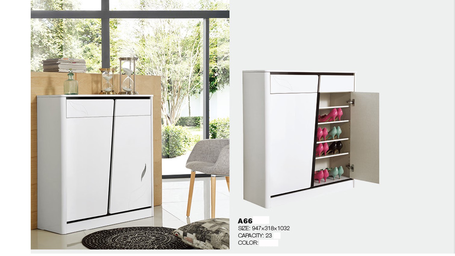 - Tủ giày hiện đại A66 được làm bằng gỗ cao cấp nhập khẩu, đã được chứng minh có tuổi thọ cao, có khả năng chống mối mọt. Công nghệ sơn lacquer 7 lớp tạo sự dày dặn và khó phai màu cho sản phẩm. Đây là một ưu điểm lớn khi sử dụng trong điều kiện thời tiết nóng ẩm ở Việt Nam.