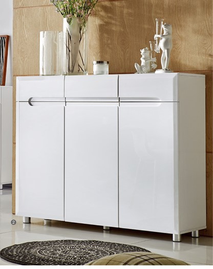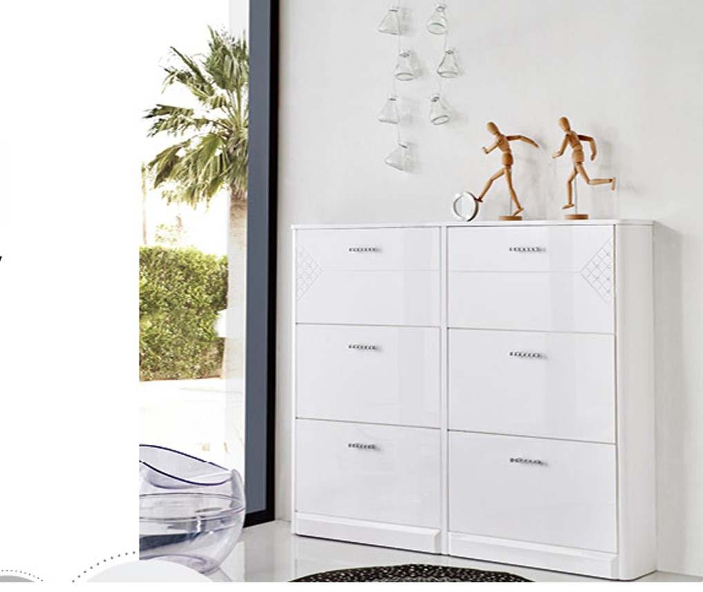 - Mang kiểu dáng cực kỳ hiện đại, tông màu trắng sang trọng. Tủ thiết kế với 3 cánh cửa kín có tính thẩm mỹ cao, và 3 hộc kéo phía trên, giúp người dùng có một không gian đựng giày dép và các vật dụng khác thoải mái theo từng loại, dễ dàng cho việc sử dụng. Tủ còn được thiết kế các lỗ thoáng khí phía sau, giúp những đôi giầy của bạn luôn khô thoáng và sạch sẽ.