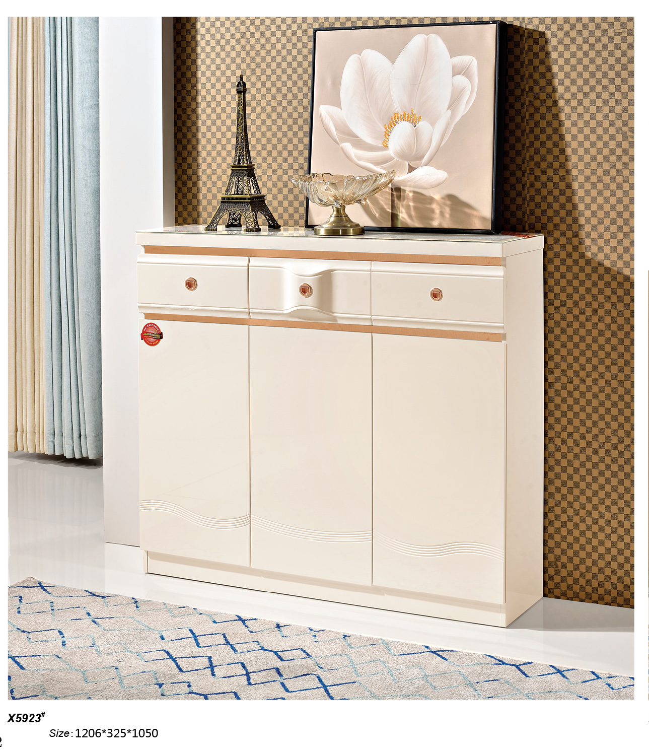 - Tủ giày mặt kính hiện đại X5923 được nhập khẩu 100% từ nước ngoài với gỗ công nghiệp thân thiện với môi trường và công nghệ sơn 7 lớp hiện đại. Phía trước tủ kín đáo lịch sự, phía sau có các lỗ hổng để không khí được lưu thông. Tủ giày gồm 3 cánh và 3 hộc kéo phía trên. Tủ giày là sự kết hợp giữa màu trắng phối cùng màu đồng tạo sự hài hoài và sang trọng cho sản phẩm. Mặt kính được trang bị bằng kính cường lực chuẩn 3C, giúp cho người sử dụng được đảm bảo an toàn hơn.